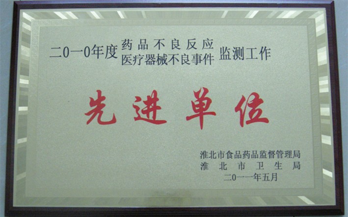 我院荣获药品不良反应及医疗器械不良事件监测工作先进单位称号