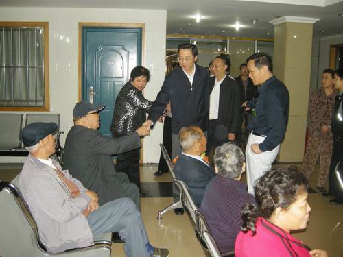 9月21日上午,市委副书记陈良刚、市委常委组织部沈光继一行亲临市妇幼保健院看望体检中的离退休老干部,陈良刚副书记与老干部一一握手,老干部感激的说:“老干部局每年安排我们集中检查身体,体现了市委、市政府对我们离退休老干部的关心,我们很感谢”。
