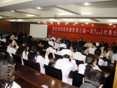与会代表对以上报告分组进行了广泛的讨论和审议,以举手表决的方式,通过了《2011年医院工作报告》、《提案解答报告》并选举产生了新一届工会委员会。整个会议洋溢着民主、团结、和谐、热烈的气氛,达到了预期目标,市妇幼保健院工会换届选举暨第三届一次职代会在《国际歌》声中圆满闭幕。