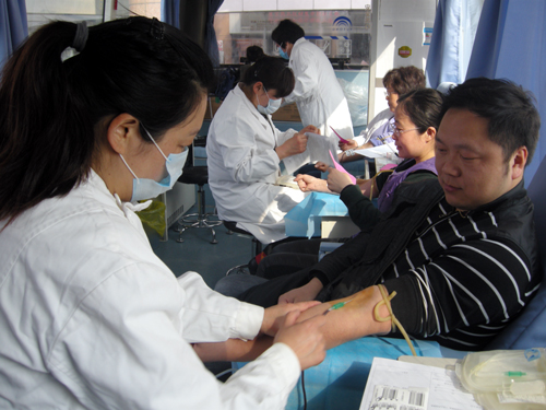 献血车内气氛愉快轻松,参加献血的医务人员中有多次参与无偿献血的老职工,也有第一次参与无偿献血的新职工,大家纷纷表示,无偿献血是一件非常光荣的事情,关键时刻可以挽救他人的生命,是医务工作者义不容辞的责任。此次有40人预约无偿献血,献血量达9000多ml,充分地展现了市妇幼保健院广大职工热心公益,奉献爱心的一片真情。