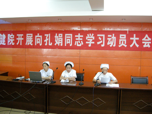 会上,市妇幼保健院工会主席梁静平,全文宣读了安徽省卫生厅《关于在全省卫生系统开展向孔娟同志学习活动的通知》,号召全院护理工作者要向孔娟同志学习,学习她对患者满腔热情、无微不至的仁爱精神;学习她对技术精益求精、勇攀高峰的进取精神;学习她对工作任劳任怨、无私奉献的敬业精神;学习她对社会充满爱心、乐于助人的博爱精神。