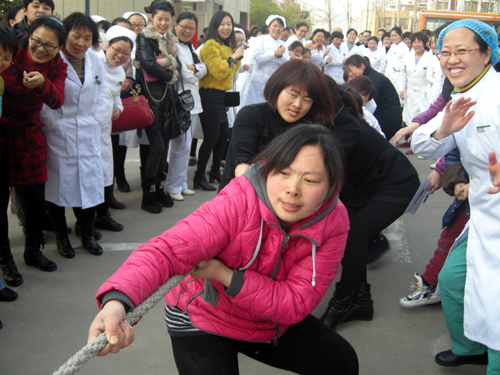 拔河、穿针引线、夹球接力、蹲跳接力,四个竞赛项目在热情、激烈、祥和的气氛中进行,拉拉队的加油声此起彼伏,把活动现场的气氛推向高潮,女职工们精神饱满、团结奋战、顽强拼搏,欢声笑语溢满了整个活动现场。为保证医院的正常运作,比赛之外有更多奋斗在一线的女职工,她们依然坚守在岗位上,为患者提供优质的医疗服务,用行动去庆祝属于自己的节日,诠释着奉献的意义。