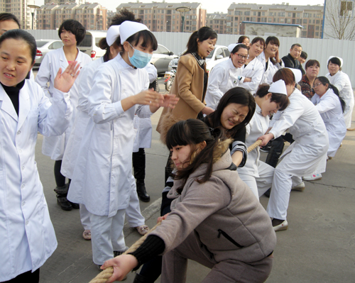 阳春三月,春意盎然,3月5日下午,市妇幼保健院举办庆“三八”女职工拔河、转呼啦圈穿回形针、踢球倒物趣味竞赛,活动现场气氛热烈,加油声、欢呼声此起彼伏,来自全院各科室的近百位女职工参加了竞赛。为保证医院的正常运作,很多女职工依然坚守在她们岗位上,为患者提供优质的医疗服务,用行动去庆祝属于自己的节日,诠释着奉献的意义。
