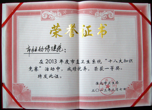 市妇幼保健院高度重视此次竞赛,选派院妇委主任曹颖、计生干部寿春艳、团支部副书记王辉参加此次竞赛,由初选到复赛,参赛选手沉着冷静、认真仔细,回答问题熟练准确、干脆利落,通过个人必答、抢答、集体必答、风险题四种竞答,经过激烈的角逐,市妇幼保健院代表队取得第一名的好成绩。