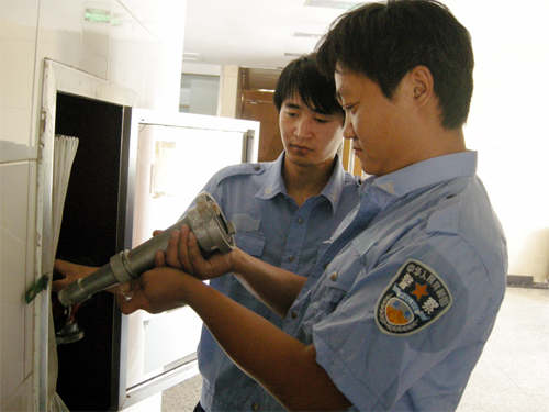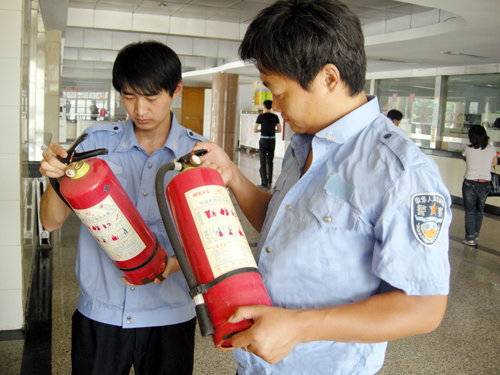 (图为市妇幼保健院消防专员认真检查消防器材)