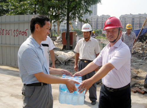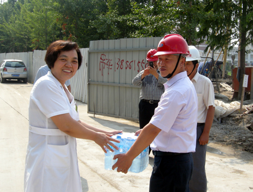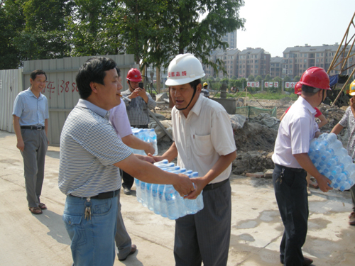 (图为院领导亲自为工地一线工人送上降温的纯净水)